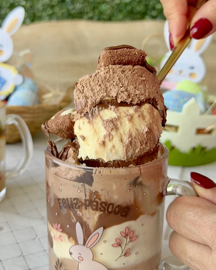 Combo Especial de Páscoa 🐰✨ As 4 canecas mais desejadas em uma experiência completa: 🍯 Banoffe 🍫 Kinder Bueno 🍫 Ferrero Rocher 🍓 Ninho com Morango Perfeito pra presentear ou simplesmente provar todos os sabores mais irresistíveis da Páscoa. 🎁 Acompanha as 4 canecas exclusivas de Páscoa — edição limitada.